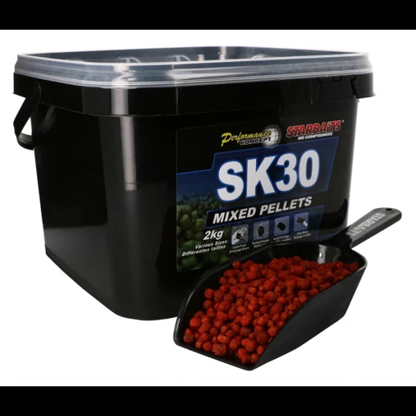 Pellets Starbaits Performance Concept SK 30 – 2kg Formulée à partir de matières premières carnées de haute qualité reconnues pour leurs principes attractifs tels que: farines de poissons séchées à base température, extraits solubles de protéines de poissons, extraits marins, et associés à des composés attractifs solubles provenant du calamar ainsi que du krill, la « SK 30 » possède un profil en acides aminés ainsi qu’en acides gras permettant de la classer comme étant un appât indispensable dans la sélection de gros poissons sur un poste.