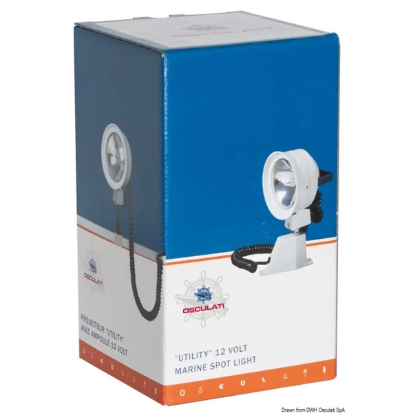 Caractéristiques techniques : 1) fabriqué en ABS blanc, avec parties en laiton chromé; 2) ampoule optique 4″ « Général Electric » totalement étanche; 3) bras orientable dans toutes les directions; 4) bloc amovible, avec câble de courant extensible; 5) interrupteur situé sur la calotte du projecteur; 6) inaltérabilité de l’ampoule G. E. qui étant sous vide, empêche toute oxydation de la parabole argentée; 7) fiche avec LED; 8) prise allume-cigare incluse; 9) Phare amovible en dévissant le pommeau. Avec bloc de prise étanche qui peut être installé libre ou encastré. Avis Phare Osculati Utility Écrivez votre avis
