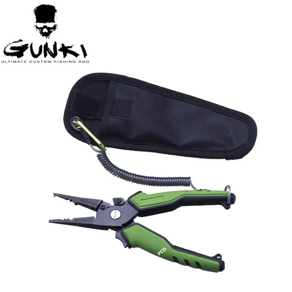 Pince multifonction, de marque Gunki, permettant de couper les mono-filaments & tresses, sertir des sleeves, ouvrir un anneau brisé (4mm et plus), écraser un ardillon…etc.