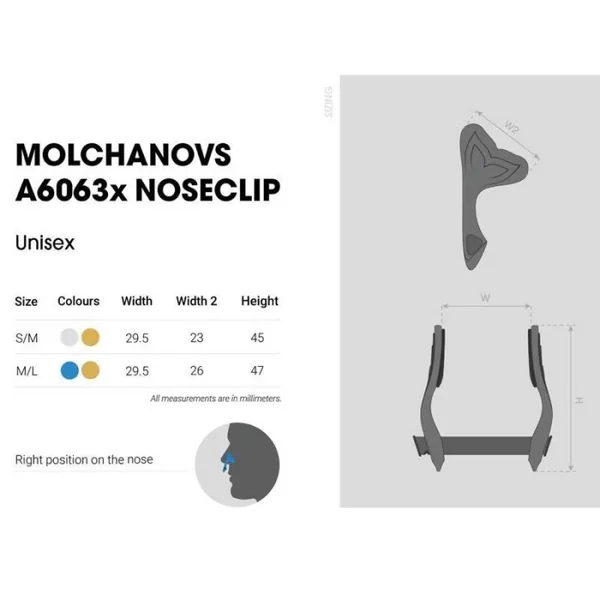 Le pince-nez Molchanovs A6063 est conçu pour offrir une expérience inégalée en apnée : ultra-léger, hautement résistant et confortable à porter, il deviendra rapidement un indispensable de votre équipement.