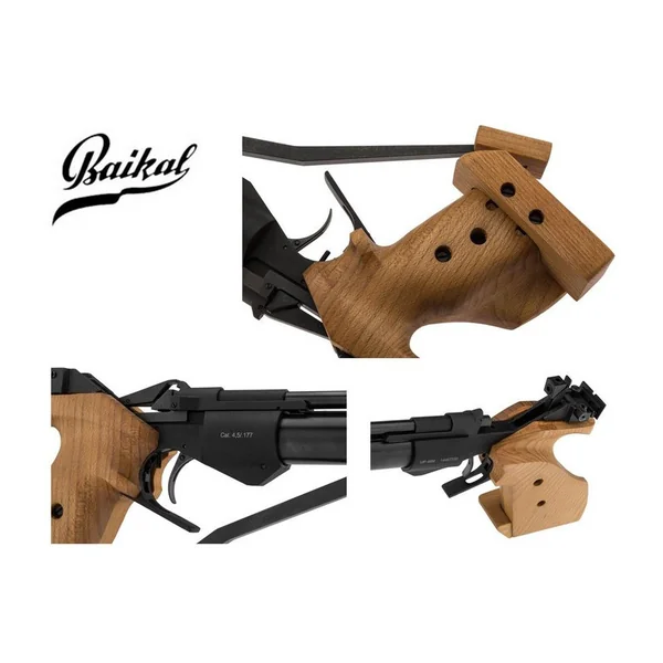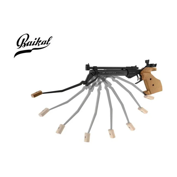 PISTOLET 4.5MM BAIKAL MP46 M : Caractéristiques :-Pistolet à air comprimé pour la compétition et l’initiation en club de tir.-Pistolet BAIKAL MP-46M destiné au tir de précision à 10 m, calibre 4.5 mm (.177) – Diabolos-Le long levier d’armement bande le ressort sans effort (78.4 N) grâce à l’effet de levier, ce qui permet à cette arme d’être utilisée par des enfants en école de tir comme par des adultes.-Organes de visée standards adaptés au tir sur cible UIT intégralement réglables :-Détente réglable en poids de départ entre 390 et 980g, course de détente réglable de 0.2 à 2.0 mm.-Vitesse des projectiles : 140 m/s (environ) soit une énergie : 4.9 joules.-Longueur totale 42cm.-Canon de 28cm en acier carbone.-Poids : 1Kg210.-Cran de mire réglable en élévation et en dérive.-Idéal pour les écoles de tir-Crosse ergonomique réglable-Livré avec 2 plaques crans de mire réversibles soit 4 largeurs et 3 guidons.-Livré avec joints et amortisseur de ressort de rechange, clef/tournevis, chasse goupille et tringle de nettoyage.*Prix de vente conseillé 2018 : 649€.*ARME SOUMISE A LA LEGISLATION.*AUCUNE LIVRAISON NE POURRA INTERVENIR SANS PIECE JUSTIFICATIVE. (Carte d’Identité Nationale)