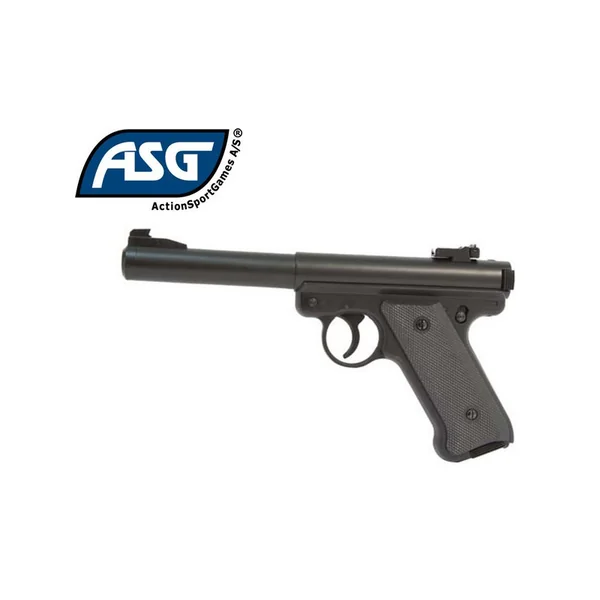 PISTOLET Mk1 GNB ASG : Caractéristiques : -Réplique pistolet mod. MK1 noir, -culasse fixe, -gaz bouteille, -chargeur de 17 coups, -poids de 550 gr, -longueur de 248 mm, -énergie <1.33 j. PISTOLET SOUMISE A LA LEGISLATION : CARTE D'IDENTITE OBLIGATOIRE.