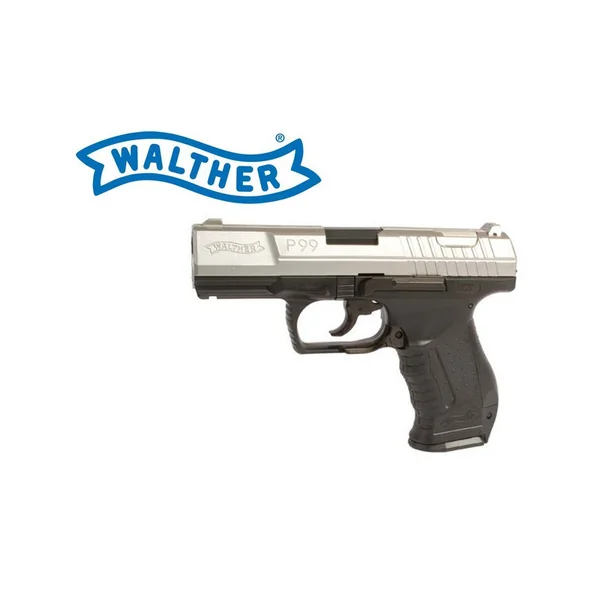 PISTOLET WALTHER P99 BICOLORE : Caractéristiques : -Réplique pistolet WALTHER P99 bicolore, -ressort, chargeur de 12 coups, -énergie < 0,5 j, -longueur de 180 mm, -poids de 420 gr. -Marquage officiel de la marque WALTHER. -Vendue avec son deuxiéme chargeur de 100 billes. Délai Moyen D'expédition : 3 à 5 jours. PISTOLET SOUMISE A LA LEGISLATION : CARTE D'IDENTITE OBLIGATOIRE.