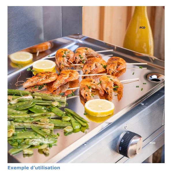 Découvrez cette plancha électrique Le Marquier avec son châssis en inox satiné qui supporte la corrosion et les intempéries.