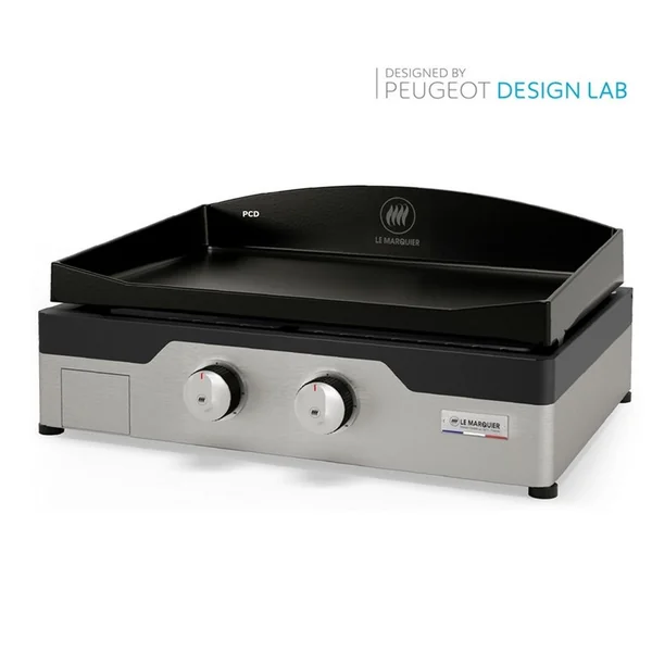 Découvrez cette plancha gaz Le Marquier avec son châssis en inox et en acier peinture époxy de couleur noir , pour un design dessiné en collaboration avec Peugeot Design Laboratoire.