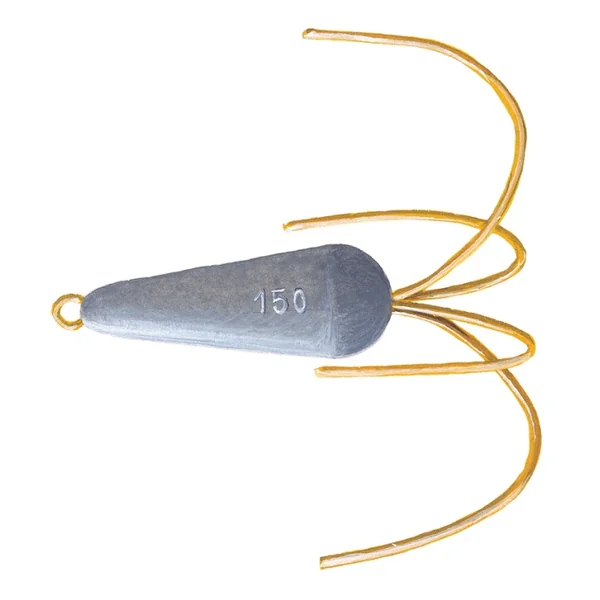 Les branches du grappin permettent au plomb de se fixer dans le sable ou sur les rochers. Souples, elles sont facilement dégagées au moment de ramener la ligne. Le pêcheur pourra leur donner la forme souhaitée en fonction des conditions de pêche.