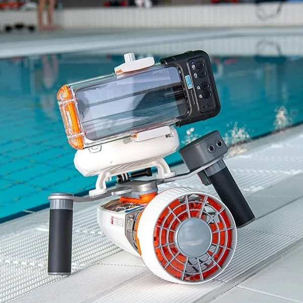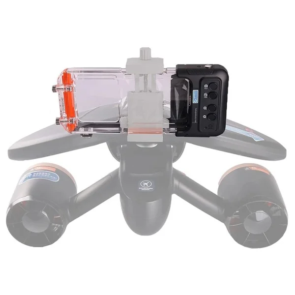 Il s’intègre parfaitement aux supports fournis avec les scooters sous-marins Whiteshark Mix Pro et Tini, ainsi qu’avec le Navbow et Navbow+ lorsqu’ils sont équipés du support smartphone optionnel.