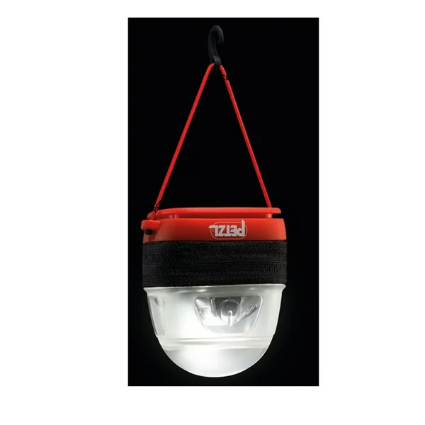 Étui de protection et de transport pour lampes frontales compactes Petzl permettant la diffusion de lumière en mode lanterne.