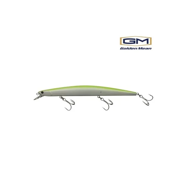 Spécialement conçu pour les eaux européennes, le Golden Mean Luna Crescent est un grand jerkbait effilé, long de 18 cm. Equipé d’un transfert de masse et profilé comme un missile, le Luna Crescent atteint des distances de lancer impressionnantes. Armé tout inox en Owner ST-46 numéro 3 et ultra solide, il est recouvert d’un revêtement spécial pour résister aux dents acérées. C’est le leurre idéal pour la pêche du barracuda du bord, des petits thonidés et du brochet. Sur le barracuda, on peut l’utiliser soit en récupération très lente ou d’une manière plus agressive, avec des twitchs qui font miroiter ses flancs en envoyant de grands flashes lumineux. Sur les poissons pélagiques, on peut l’utiliser en traîne sans jamais le faire décrocher. Sur le brochet, il ne faut pas hésiter à entrecouper ses animations de pauses.