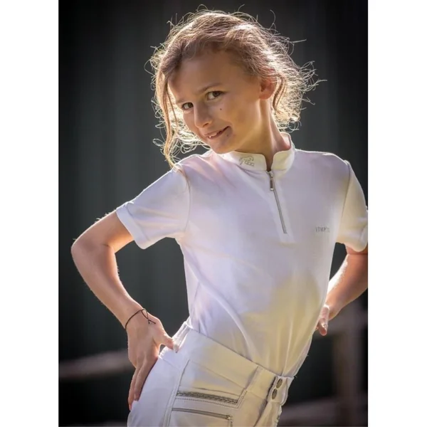 Le polo de concours Charlie de Jump’In est un haut d’équitation spécialement conçu pour les jeunes cavaliers en compétition. Il allie une coupe élégante et un confort adapté à la pratique du concours hippique Col officier structuré qui donne un aspect soigné et professionnel, avec une finition qui rappelle les chemises traditionnelles de concours Manches courtes subtilement découpées, idéales pour offrir liberté de mouvement sans gêne, notamment lors des épreuves de saut ou de dressage. Fermeture par petit zip argenté sous le col, pratique pour enfiler et ajuster rapidement le polo tout en conservant une ligne élégante.