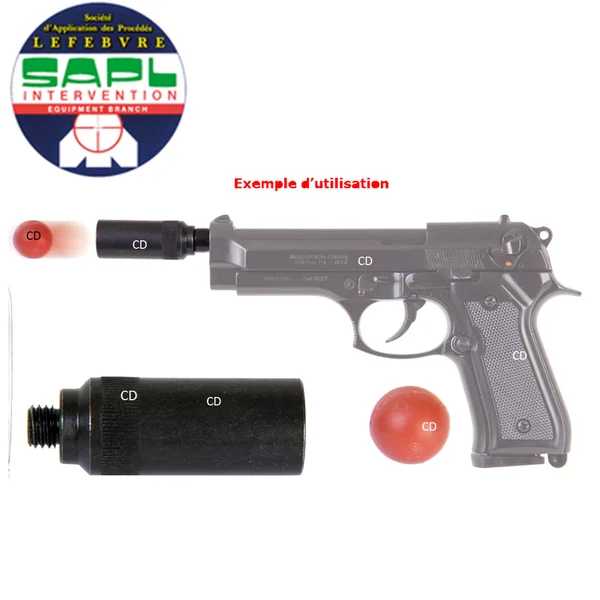 -L’embout self-gomm lance balle de protection est un élément à visser sur le canon de votre arme d’alarme et de signalisation, pour la transformer en arme de protection.