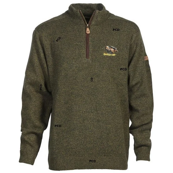 Le Pull de chasse col cheminée avec broderie sanglier, de marque Percussion vous accompagnera lors de toutes vos sorties.