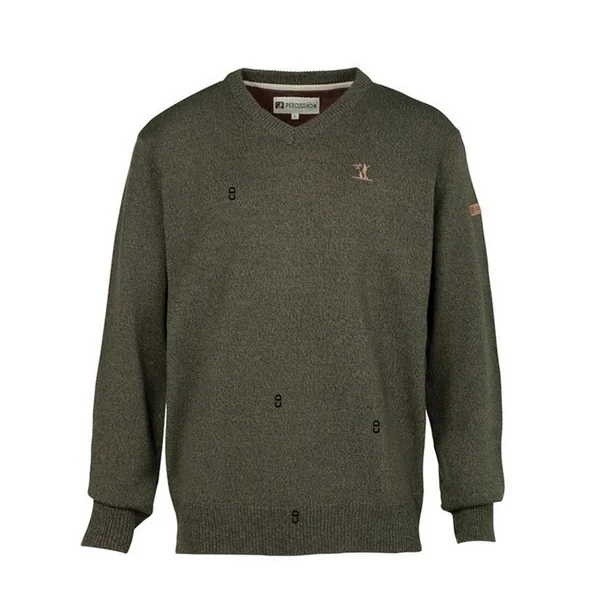 Ce pull de chasse, coloris Kaki, avec col en V, de marque Percussion, vous accompagnera durant vos sorties chasse et même pour toutes les autres occasions…