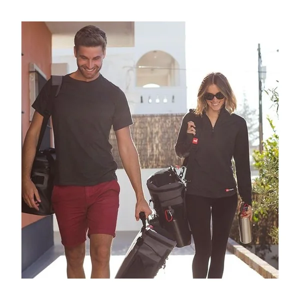Grâce aux poches extérieures, vous pourrez enmporter deux bouteilles de boissons isolées. Le sac de transport est le partenaire idéal pour toutes vos aventures.
