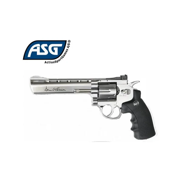 REVOLVER CO2 DAN WESSON 6 POUCES SILVER : Caractéristiques : -REVOLVER à CO2 calibre 6MM à douilles, -Longueur : 29.8 cm, -Poids : 994g environ, -Capacité : 6 -Puissance 1 joule. REVOLVER SOUMIS A LA LEGISLATION : CARTE D’IDENTITE OBLIGATOIRE.