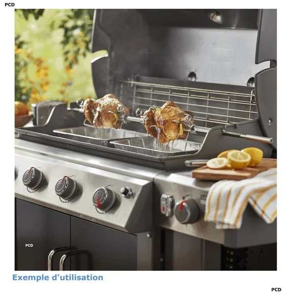 Ce rôtissoire est conçu être fixé sur la cuve des barbecues Weber Genesis II 4 et 6 brûleurs.
