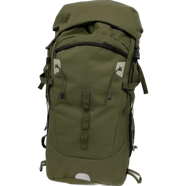 Composition : 100% polyester Ripstop avec enduit PVC. 1 grand compartiment principal avec rabat sur le haut du sac, 1 grande poche zippée sur le devant, 2 poches latérales en filet. Dorsale renforcée. Sangle de maintien du poitrail réglable avec sifflet. Sangle de maintien à la taille. Coloris : kaki. Taille : 65L.