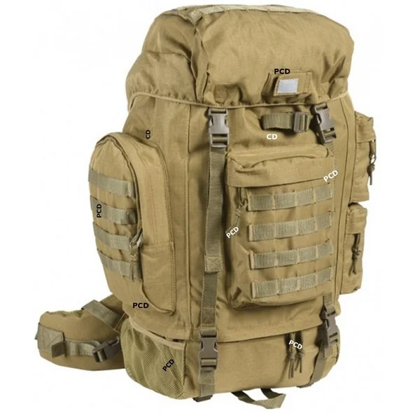 Bandes pour fixation MOLLE ou clip A.L.I.C.E. Bretelles et sangle ventrale ergonomiques renforcées et réglables.