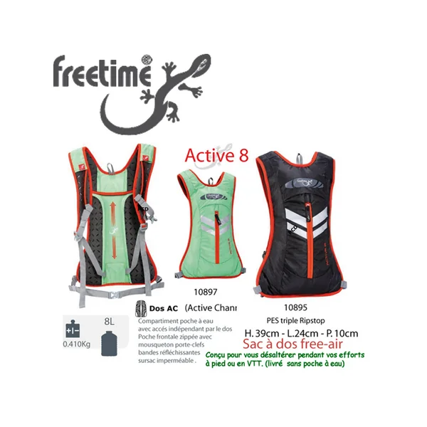 Sac à dos d’hydratation, de marque Freetime, avec une ergonomie du dos idéale pour le trail, le raid ou le VTT.