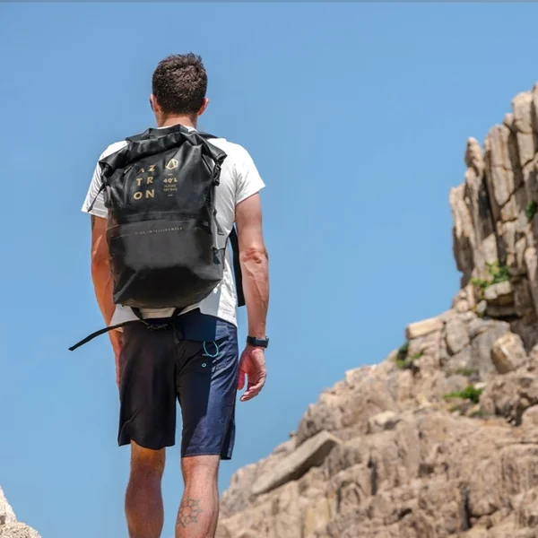 Sac à dos étanche Aztron 40 L Que vous participiez à une session de SUP ou à des aventures en plein air, le sac à dos étanche FUTURE 40L fabriqué avec un tissu Tarpaulin 100% imperméable est le compagnon imperméable idéal pour garder votre équipement au sec.
