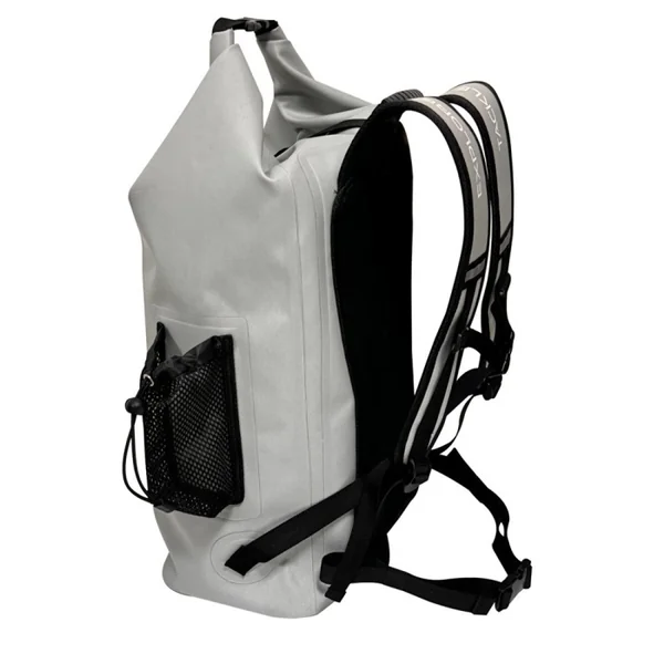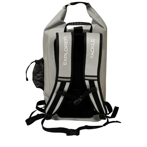Sac à dos Explorer Tackle Week-end trip Proof Pack Sac à fermeture par enroulement 100 % étanche et submersible pour le transport de votre matériel pêche (boites de leurres, bobines, etc.) Double système de fermeture : clip central nylon + clip nylon après enroulement.