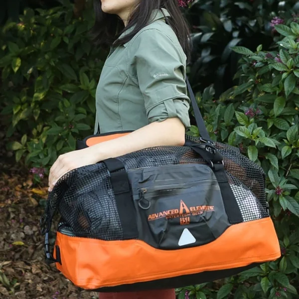 Sac Advanced Elements Funk Transportez tout votre équipement humide, sableux grâce au sac Advanced Elements Funk. Le fond du sac en PVC permet de protéger votre équipement tandis que le haut et les parois latérales en maille permettent la ventilation pour éviter toutes surprises désagréable.