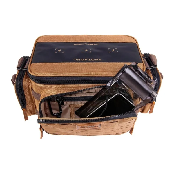 Un atout de ce sac de pêche est l’arrivée de la Drop Zone, situé sur le couvercle c’est une partie aimantée où vous pourrez mettre vos leurres en sécurité.