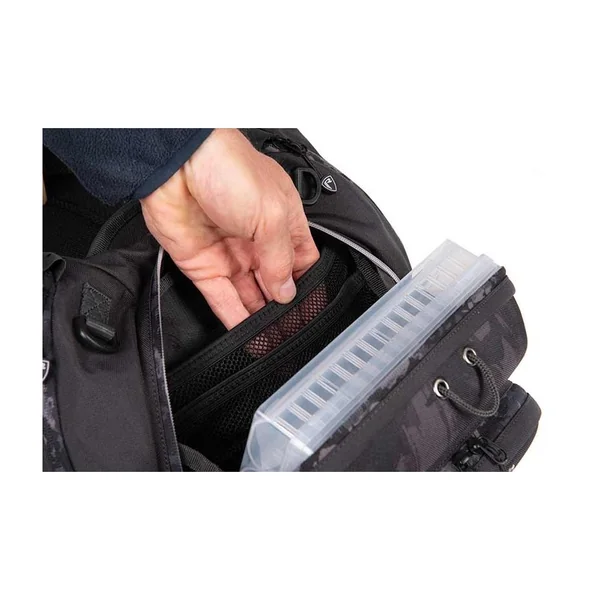 Doté du motif camouflage Fox Rage, ce sac à dos allie style, robustesse et praticité. Les fermetures éclair renforcées, la maille respirante au niveau du dos et des bretelles assurent un confort durable, même lors des longues sessions de pêche.