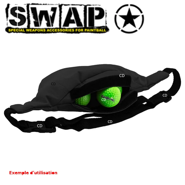 SACOCHE POUR BAZOOKA BALL NOIRE SWAP :Caractéristiques :-Sacoche, de marque SWAP, pour les balles BAZOOKA.-Le Bazooka Ball est conseillé pour une découverte ludique du Paintball.-Coloris Noire.-Livrée vide. *Taille unique.