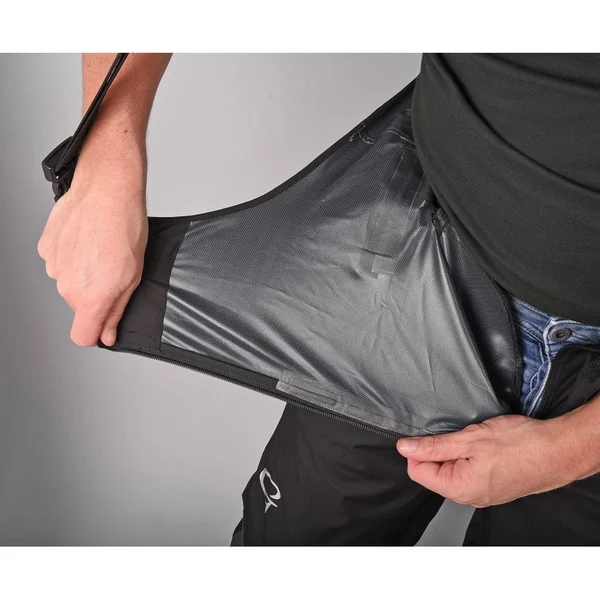 Le bas de la salopette de pêche est doté d’une bande velcro réglable permettant de l’ajuster à la chaussure ou à la botte portée sous le pantalon.