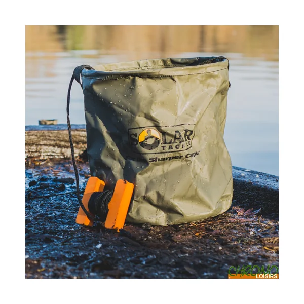 Seau souple ultra léger et compact livré avec 2 mètres de corde et sac de rangement.