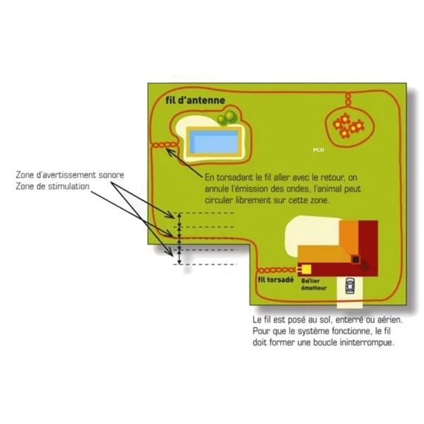 -Pour que le système fonctionne, le fil doit former une boucle ininterrompue qui part du boîtier émetteur et y revient.