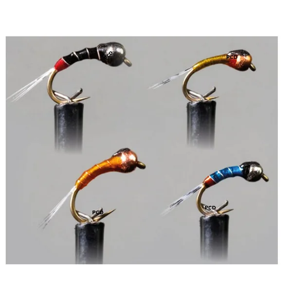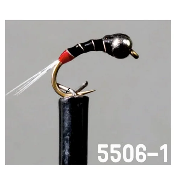 -5506-1 : Nymphe moyenne courbée et classée comme nymphe imitative. Montage perdigone en corps lisse noir avec cerques qui facilitent l’immersion. Bille et cerclage fin en argent complémenté d’un tag couleur sang à l’arrière pour apporter de légers signaux incitatifs à l’imitation. Taille hameçon : #16. Matière : Tungstène. Taille de la bille : 3. Coloris : argent. Sans ardillon. Poids : 0,235 g.