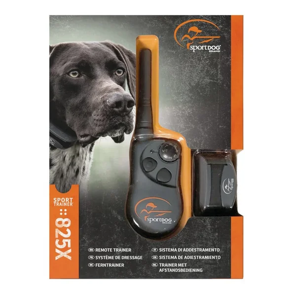 Le SportTrainer® 825X de la marque SportDOG® utilise un petit collier tout en proposant une portée atteignant 700 mètres pour un maximum de trois chiens (impliquant l’achat de colliers-récepteurs supplémentaires).