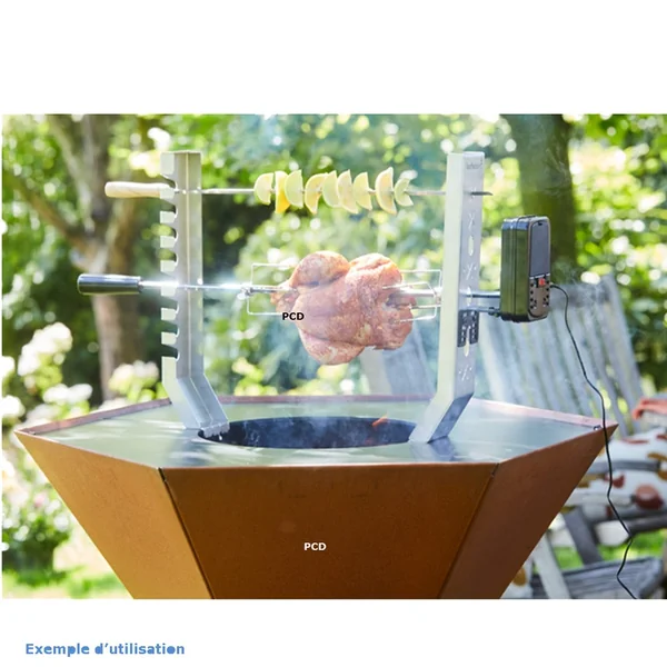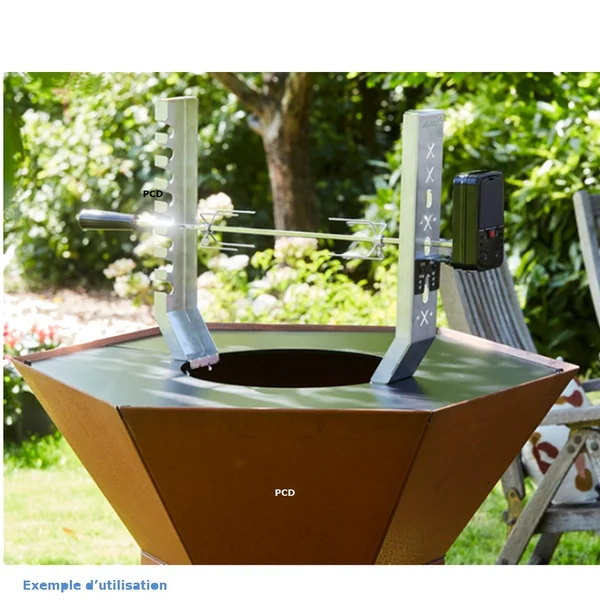 Cet ensemble de rôtisserie est spécialement conçu pour se fixer facilement à votre braséro Nestor en son centre.