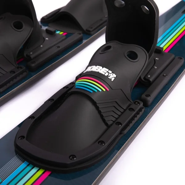 Ski nautique Jobe Mode Combo 67 50 ème anniversaire Ces skis haut de gamme sont parfaits pour skier sérieusement en combo et vous permettent de passer au ski de slalom en free ride tout en douceur. Avec fixations à montage direct, fond en V et nageoires extra brillantes.