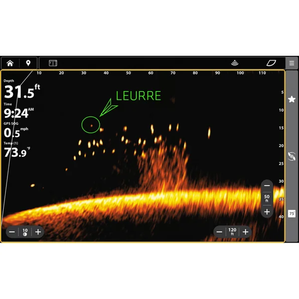 Le mode Open Water est parfait pour la pêche en pélagique, mettant l’accent sur le repérage des poissons situés entre deux eaux. Le mode TargetBoost élimine les interférences du fond, vous aidant à cibler les poissons et à suivre votre leurre dans la colonne d’eau. Cette innovation offre désormais une visibilité accrue jusqu’à 45m, idéale pour la pêche du brochet en pélagique, loin des structures du fond. Vous obtenez une vision instantanée et dynamique des poissons en mouvement.
