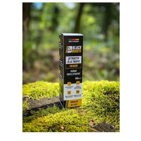 Fabriqué selon des normes de qualité élevées, l’attractant à la truffe BLACK BEASTS® est détectable sur de longues distances et son odeur est persistante pendant plusieurs jours.