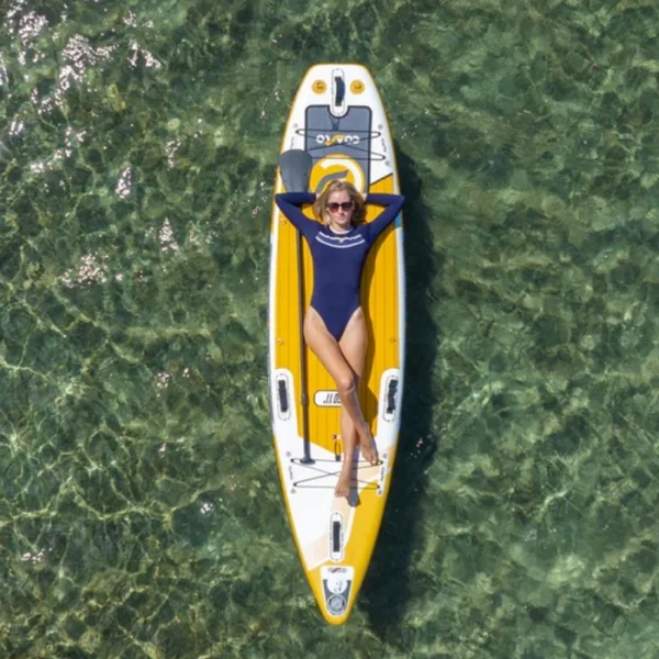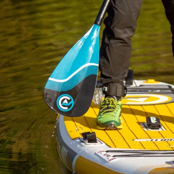 La planche dispose de la technologie Drop Stitch Termo Twin Skin qui permet d’assembler les parois en PVC en les fusionnant à chaud pour avoir une planche 30% moins lourde.