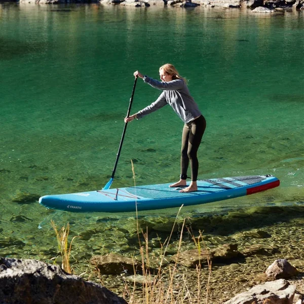 La longueur de la planche de stand up paddle aura un impact sur sa glisse/vitesse et sur les virages. A l’inverse, une planche plus longue sera un peu plus stable du fait que le volume global est plus important, cependant la largeur aura plus d’impact sur la stabilité du stand up paddle. La largeur donc détermine la stabilité de la board. Cependant, d’un point de vue performance, une planche plus large perdra à la fois en prise de vitesse et en aisance pour tourner c’est pour cela que le SUP gonflable Fanatic Ray Air 12.6 a été créé avec une largeur de 32″ (78.7 cm).