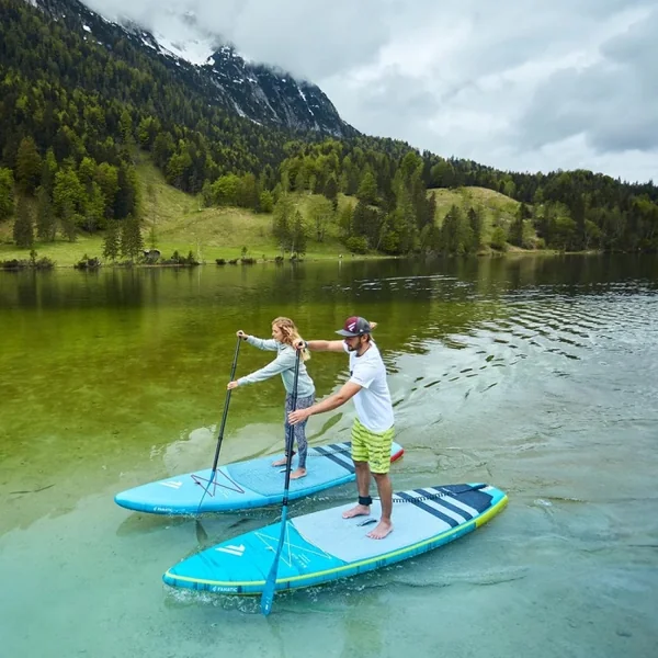 La longueur de la planche de stand up paddle aura un impact sur sa glisse/vitesse et sur les virages. A l’inverse, une planche plus longue sera un peu plus stable du fait que le volume global est plus important, cependant la largeur aura plus d’impact sur la stabilité du stand up paddle. La largeur donc détermine la stabilité de la board. Cependant, d’un point de vue performance, une planche plus large perdra à la fois en prise de vitesse et en aisance pour tourner c’est pour cela que le SUP gonflable Fanatic Ray Air Premium 13.6 a été créé avec une largeur de 35″ (88.9 cm).