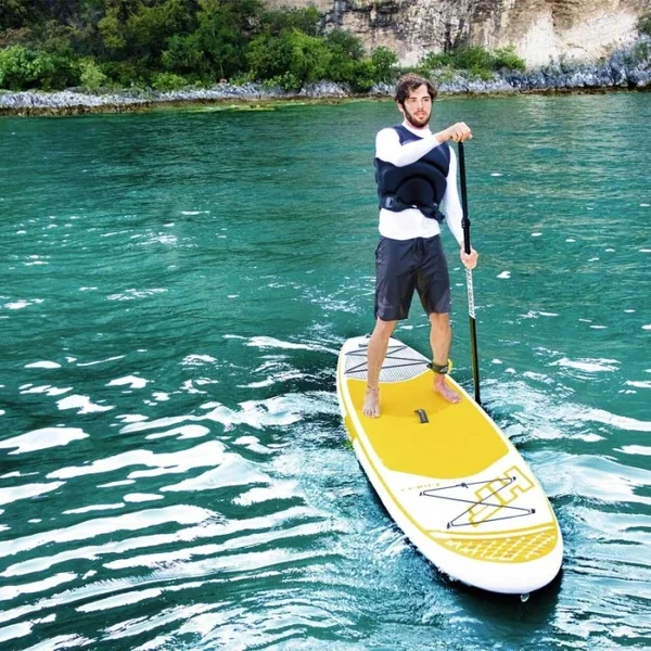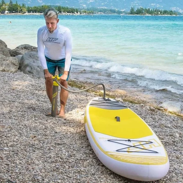 Sup Paddle gonflable Hydro Force Cruiser Tech 10.6 OCCASION Grâce aux nouveaux SUP fabriqués par Bestway, cette saison sera le moment idéal pour essayer! Et parce que les paddles sont gonflables, vous pouvez les emporter partout avec vous. Votre planche, accompagnée d’une pompe, d’un sac de transport, d’un leash et d’une pagaie, vous voilà paré pour explorer les océans! Le SUP gonflable Cruiser Tech, nouveauté 2018 est parfait pour les poids jusqu’à 120 kg. Sa rigidité vous surprendra grâce à ses 15 cm d’épaisseur.C’est le préféré de l’équipe Nootica.