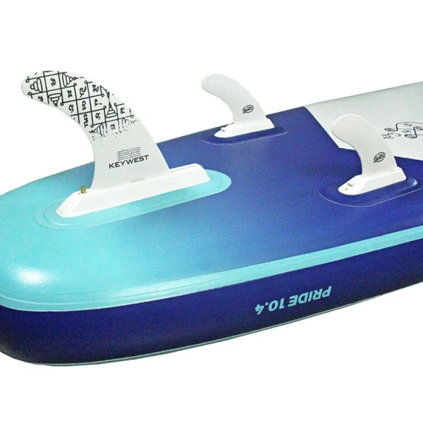 La Pride propose un niveau d’accastillage élevé : 3 poignées néoprènes, deux élastiques de pont, Pad EVA en relief 3D incrusté du logo Key west à l’infini, 4 anneaux de fixation de siège, un kick pad EVA, un anneau de remorquage, 2 ailerons latéraux démontables et un aileron central US box.