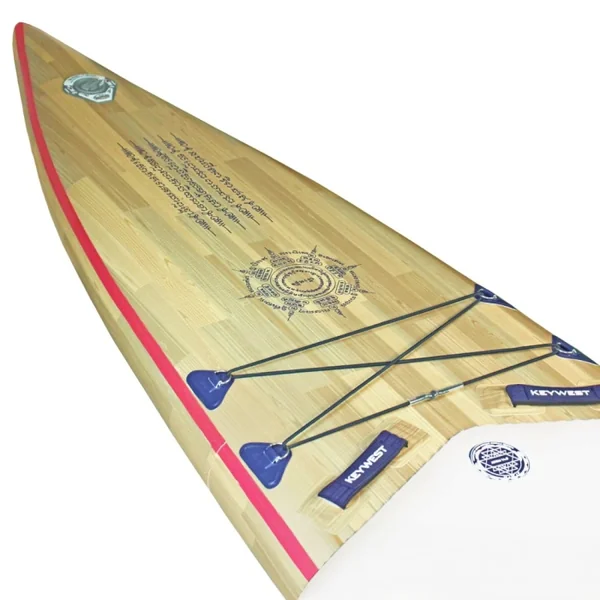 En plus de ses performances techniques, le design des SUP Key West Deluxe intègre des éléments esthétiques distinctifs. Le logo Key West est gravé directement sur le pad, ajoutant une touche de sophistication et de style à la planche. Cette gravure non seulement rehausse l’apparence de la planche, mais souligne également l’attention aux détails et la qualité de fabrication de la marque Key West.