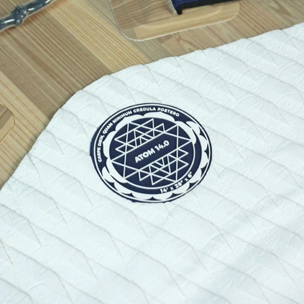 La Atom propose un niveau d’accastillage élevé : 3 poignées néoprènes, deux élastiques de pont, Pad EVA en relief 3D incrusté du logo Key west à l’infini, 4 anneaux de fixation de siège, un kick pad EVA, un anneau de remorquage, 2 ailerons latéraux démontables et un aileron central US box.