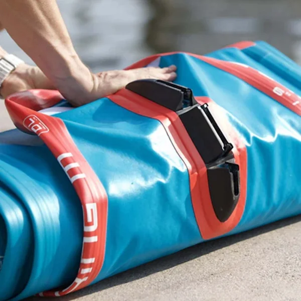 Contrairement aux boîtiers rigides traditionnels qui imposent un volume important, ce système segmenté se replie complètement, permettant d’enrouler la planche plus serré et plus facilement.