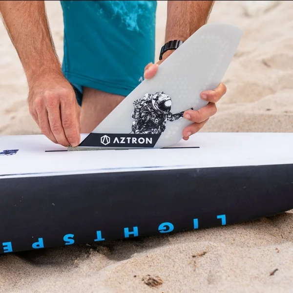 La planche Aztron Lightspeed utilise un aileron de touring en fibre de verre de 8,3 pouces. Le noyau en nid d’abeille le rend ultra-léger et rigide. Livré avec une configuration de boîte à aileron US.