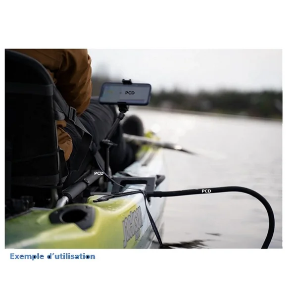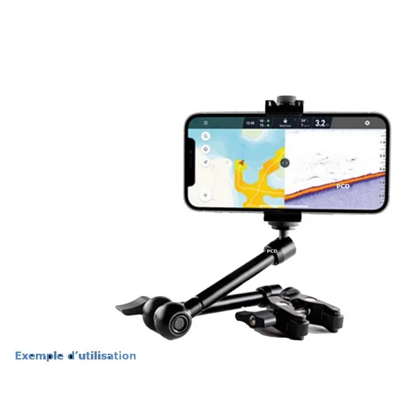 Il suffit simplement de fixer le support à votre embarcation grâce à la pince C-Clamp, de placer votre smartphone dans le support et de régler le bras du support.