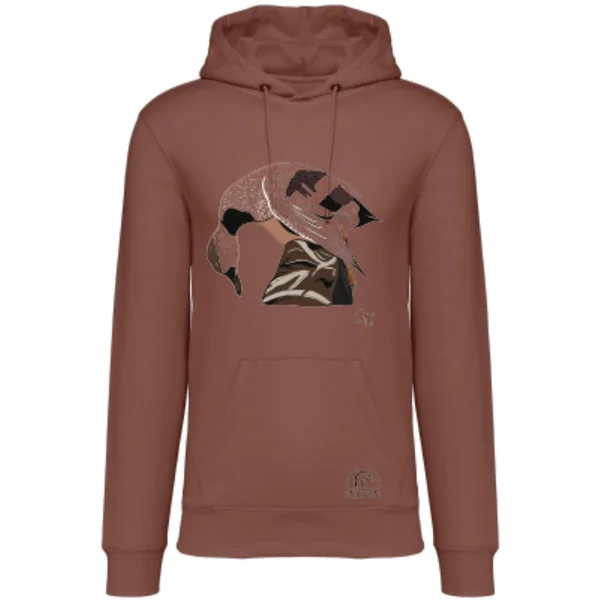 Le sweat à capuche Chipeau Sienne de la Gabion Unlimited Collection s’adresse aux amateurs de chasse, de nature et de liberté qui veulent afficher leur passion au quotidien. Son coloris sienne chaleureux, inspiré des terres sauvages, et son design graphique exclusif “Chipeau”, lui confèrent une allure authentique et décontractée.