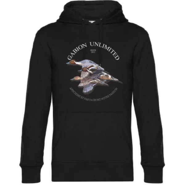 Le sweat Gabion Unlimited DH Pilet noir est bien plus qu’un simple vêtement : c’est une déclaration de style pour les passionnés de nature et de chasse. Inspiré de l’univers cynégétique, il affiche un design graphique audacieux avec le motif “Pilet” sur la poitrine, en hommage au célèbre canard sauvage. Son coloris noir profond renforce le contraste et la modernité de l’ensemble, tout en facilitant l’association avec vos tenues outdoor ou urbaines.